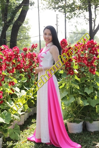 Áo dài trắng kết hoa hồng