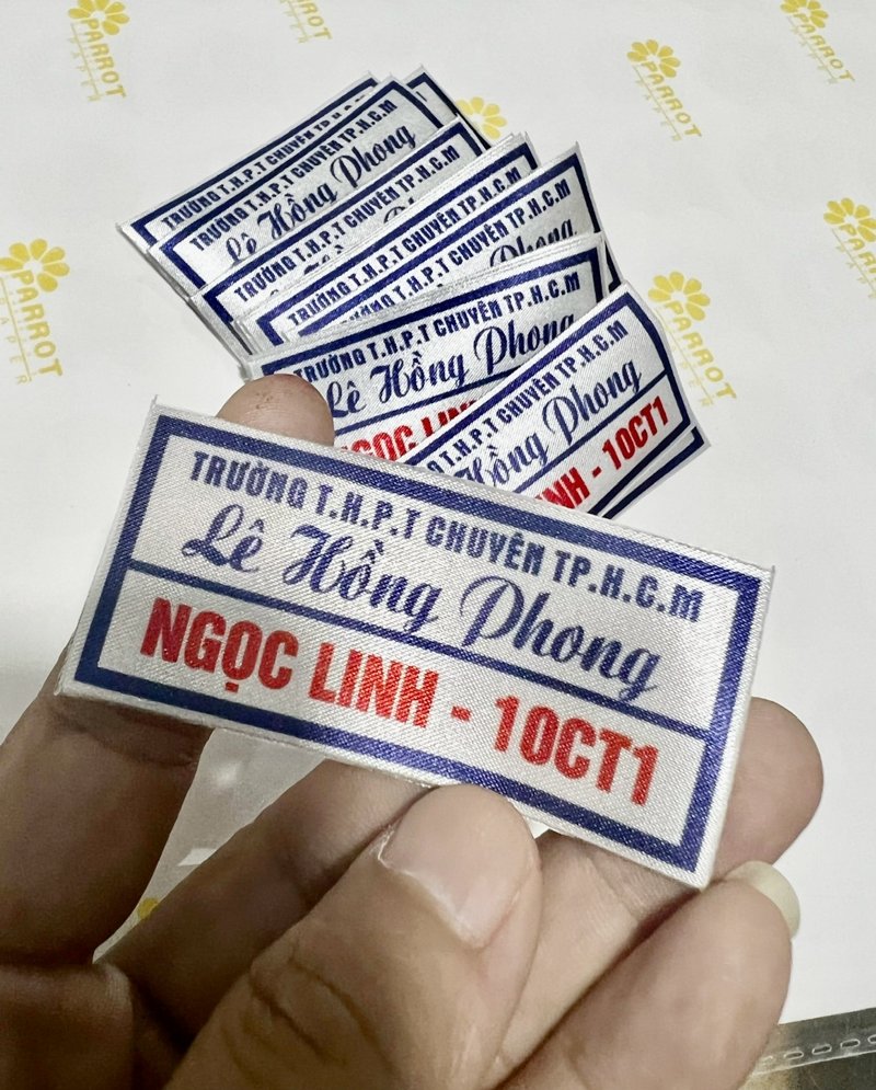 Nhà sách tuổi trẻ chúng tôi chuyên sản xuất bảng tên, phù hiệu được in Chuyển nhiệt trên vải có 1 mặt được phủ keo dán. Khi sử dụng chỉ cần ủi vào sản phẩm , rất tiện lợi cho việc làm bảng tên,học sinh, sinh viên, nhân viên bệnh viện, trên quần áo bảo hộ lao động và các nhu cầu cần dùng vải dáng khác...